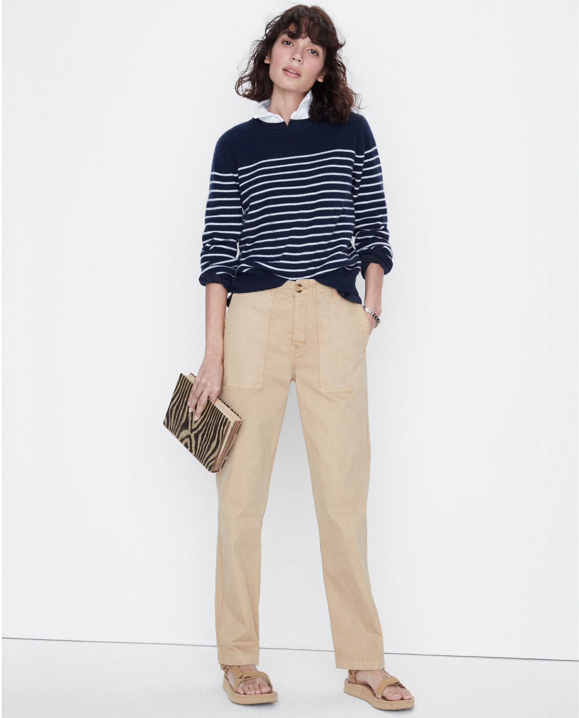 Simply put: the perfect cashmere sweater. This lightweight 100% cashmere number is something you will want to collect in every color. Easy to throw on all year long: in the summer you wear it over your shoulders as the sun drops; in the winter, layer it under your favorite pieces of outerwear. It will go with everything and live in your closet forever.