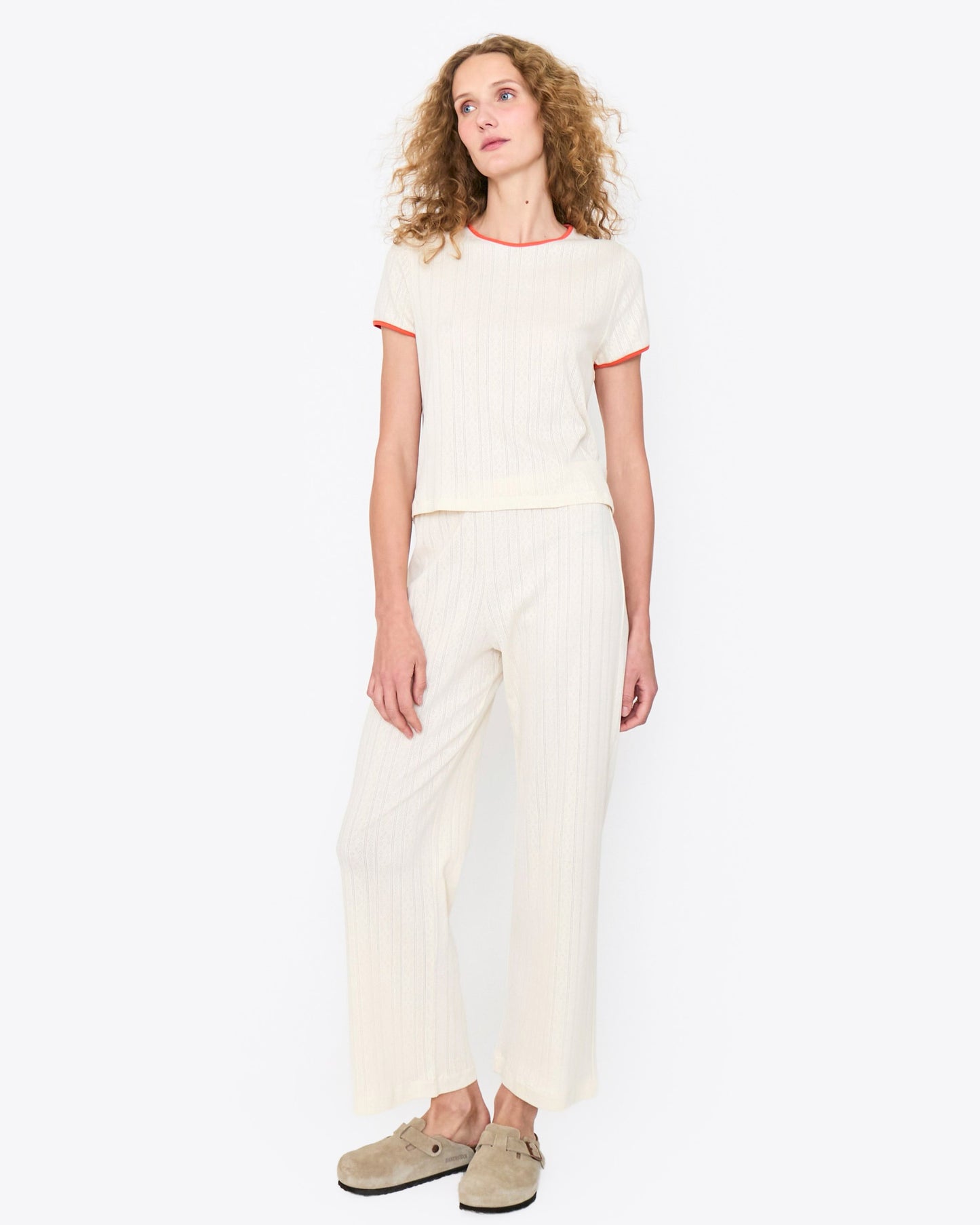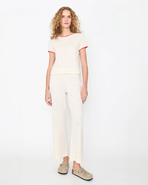 Don't call her a sweatpant. The Kelli is an organic cotton pant with an easy wide-leg silhouette and an elastic waist for pull-on perfection. Ideal for days when you're running around, or racing through an airport, the Kelli is our secret weapon for fashion cred without any effort. (Shh.)