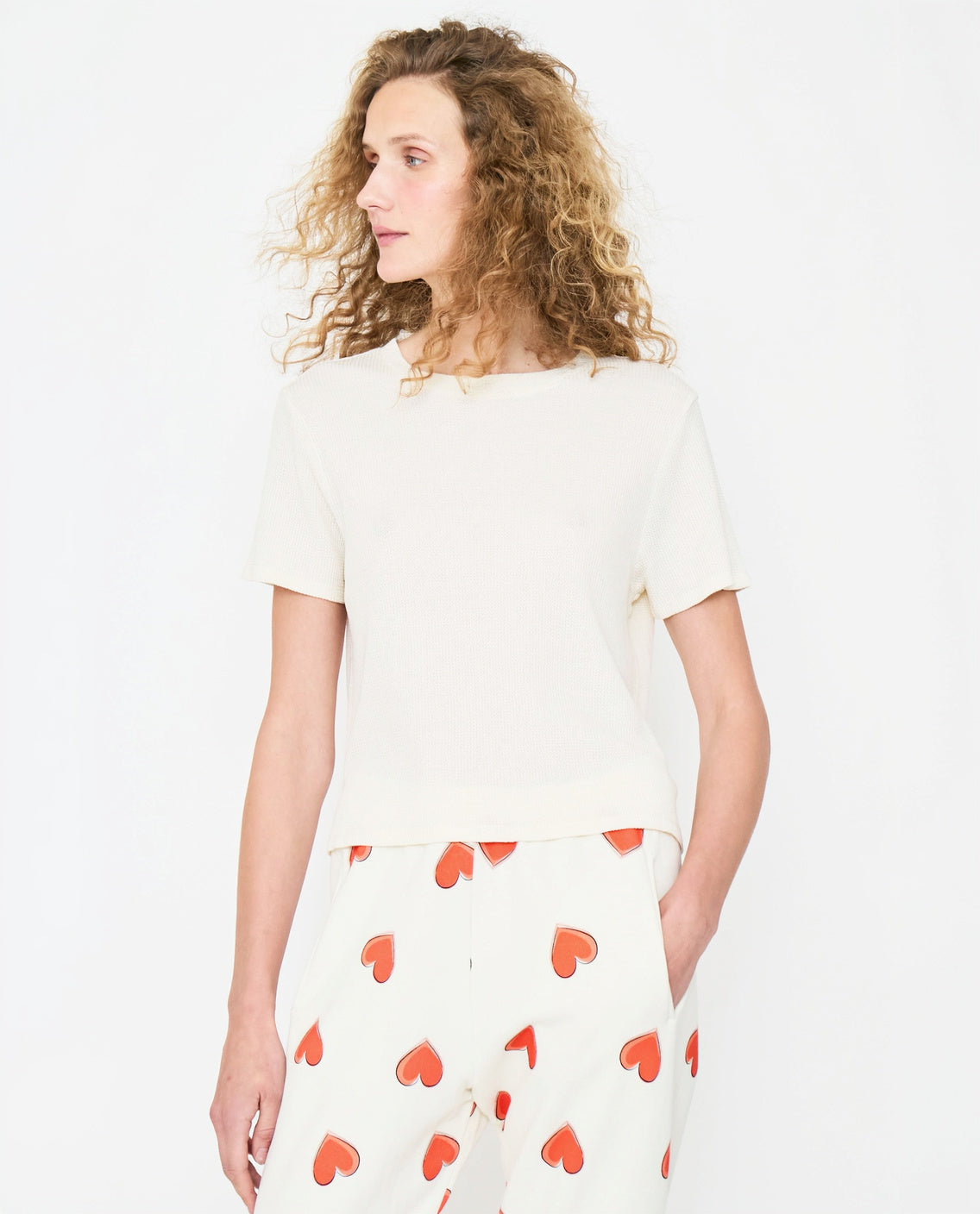 We've expanded our love of waffles to include this super soft and drapey waffle-knit tee. The shape is modeled off the subtly cropped Brentwood tee which is a riff on the Modern. We love a hybrid.